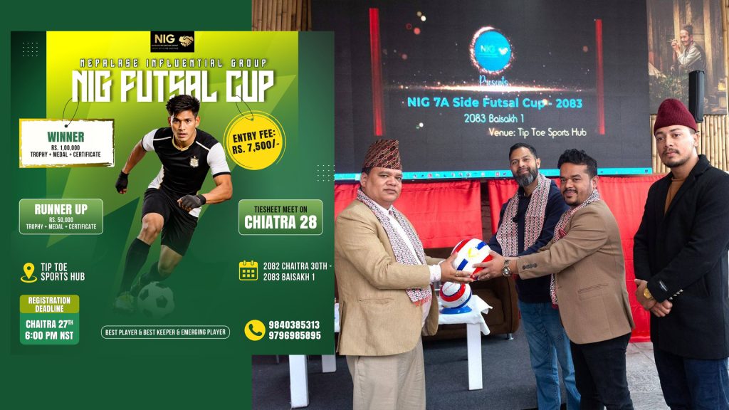 काठमाडौं । नयाँ वर्ष २०८३ को अवसर पारेर एनआइजी सेभेन ए साइड फुटसल कप (NIG 7A Side Futsal Cup) आयोजना गरिने भएको छ। एनआइजी सेभेन ए साइड फुटसल कप नेपाल इन्फ्लुन्सर ग्रुपको आयोजनामा हुन लागेको हो । यस प्रतियोगिताले खेलकुदमार्फत नेपाली समुदायलाई एकताबद्ध गर्ने लक्ष्य लिइएको छ ।