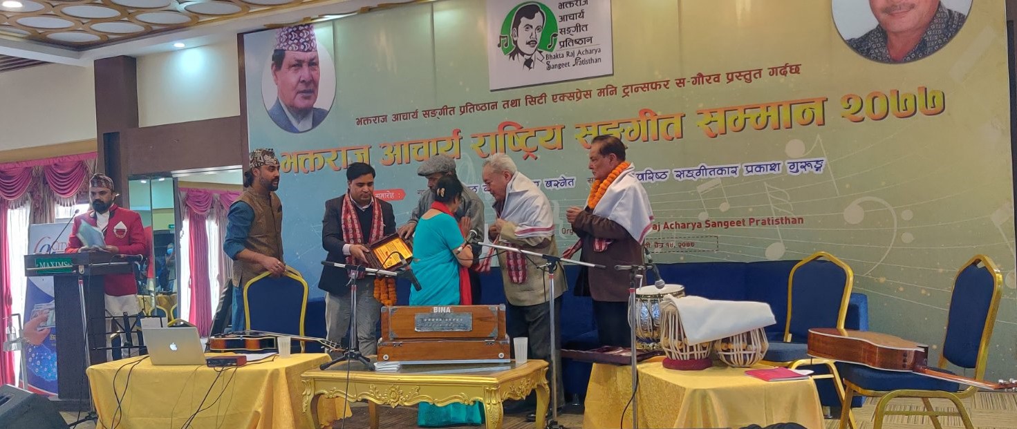 भक्तराज आचार्य संगीत प्रतिष्ठान तथा सिटी एक्सप्रेस मनी ट्रान्सफरले संयुक्त रुपमा आयोजना गरेको समारोहमा बस्नेत तथा गुरुङलाई ५०–५० हजार रुपैयाँसहित सम्मान गरिएको हो ।